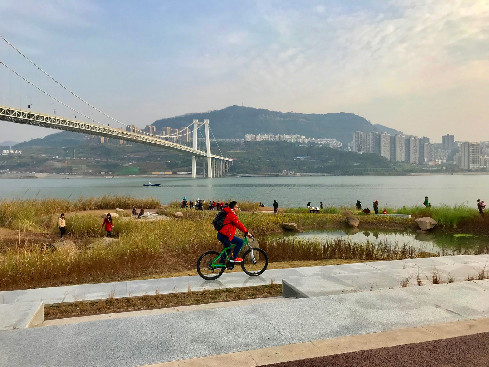 When we design the waterfront space of the Second Yangtze River Bridge in Wanzhou District of Chongqing, we put forward the idea of restoring the original style of waterfront space, eco-natural low-carbon landscape, and create an ecological waterfront park with harmonious coexistence of human, nature and city. The design fully demonstrates the cultural nature of waterscape landscape, combines contemporary culture and art with regional waterfront culture, thus arousing people's nostalgia for waterfront culture and adding new business cards to the city.