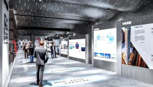 項目設(shè)計秉承“新質(zhì)云谷、智感無界”的理念,以電路板紋路、傳感數(shù)據(jù)森林作為設(shè)計符號,,貫穿整個展廳的設(shè)計,展示方式上結(jié)合數(shù)字孿生及VR沉浸式智能技術(shù),博物館機器人管家“小柯”帶領(lǐng)大家開啟展廳全息投影、手勢互動、OLED透明屏、滑軌屏等多媒體交互體驗,全方位、多感官地打造沉浸式5D互動展示場景,展示了寧波傳感谷和寧波柯力傳感集團的歷史文化和工業(yè)產(chǎn)品。