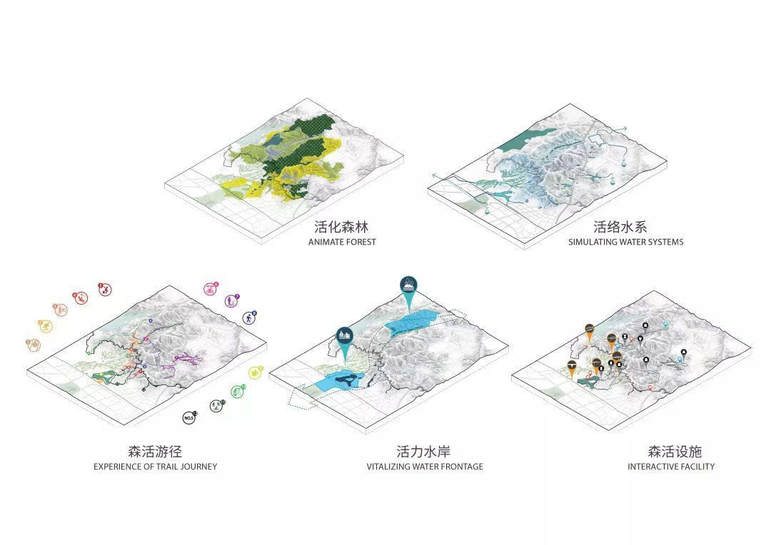 聯(lián)合中國(guó)市政工程西北設(shè)計(jì)研究院,AECOM 的水利工程師、總體規(guī)劃師、生態(tài)學(xué)家和景觀設(shè)計(jì)師組成跨學(xué)科團(tuán)隊(duì),將水資源管理、生態(tài)修復(fù)和開放空間設(shè)計(jì)緊密結(jié)合,旨在恢復(fù)和維持河流的自然生態(tài)。以自然生態(tài)景觀帶動(dòng)城市發(fā)展為契機(jī),結(jié)合當(dāng)?shù)丶竟?jié)河流生態(tài)系統(tǒng)可持續(xù)性為原則,創(chuàng)造綠鏈,強(qiáng)調(diào)核心生態(tài)景觀綠廊,改善場(chǎng)地的生態(tài)環(huán)境和增加綠色覆蓋。在提升水力綜合治理技術(shù)上,以水分配、水安全、水清澈、水生態(tài)為目標(biāo)。在三個(gè)城市間縫合兩岸城市界面,以達(dá)到兩岸共贏和諧的新疆一體化平衡發(fā)展,同時(shí)創(chuàng)造多樣化的濱水體驗(yàn)和娛樂,以加強(qiáng)昌吉的城市形象。