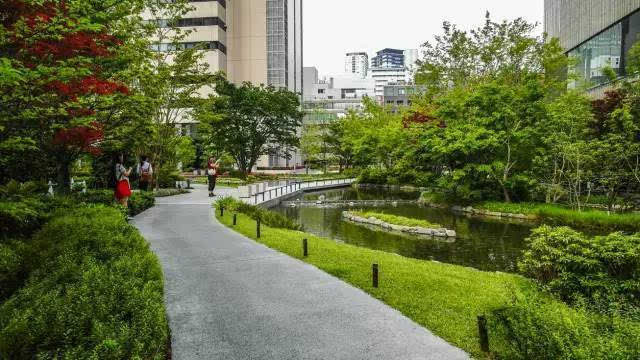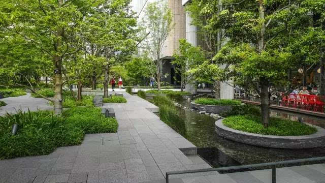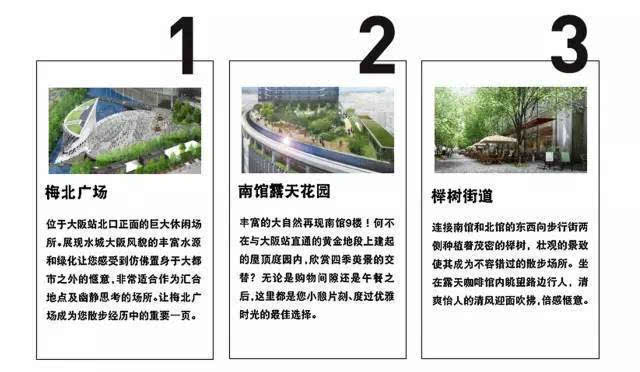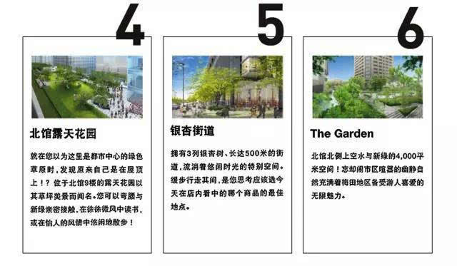 整個項目由南至北,由梅北廣場(安藤忠雄參與設(shè)計)、南館露天花園、櫸樹街道、北館露天花園、銀杏街道、The Garden組成。