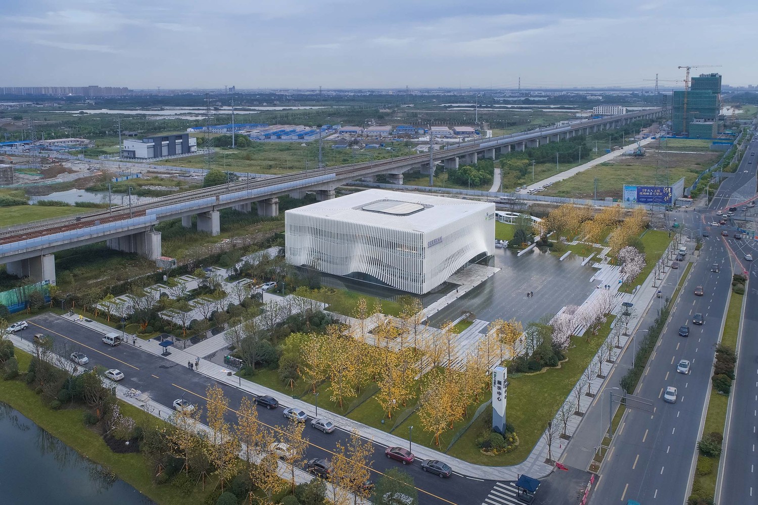 展示館位于高鐵蘇州北站東側,位于空曠基地,南臨南天成路,東臨澄陽路,北靠京滬高鐵,用地面積1.17公頃,建筑面積6030㎡。