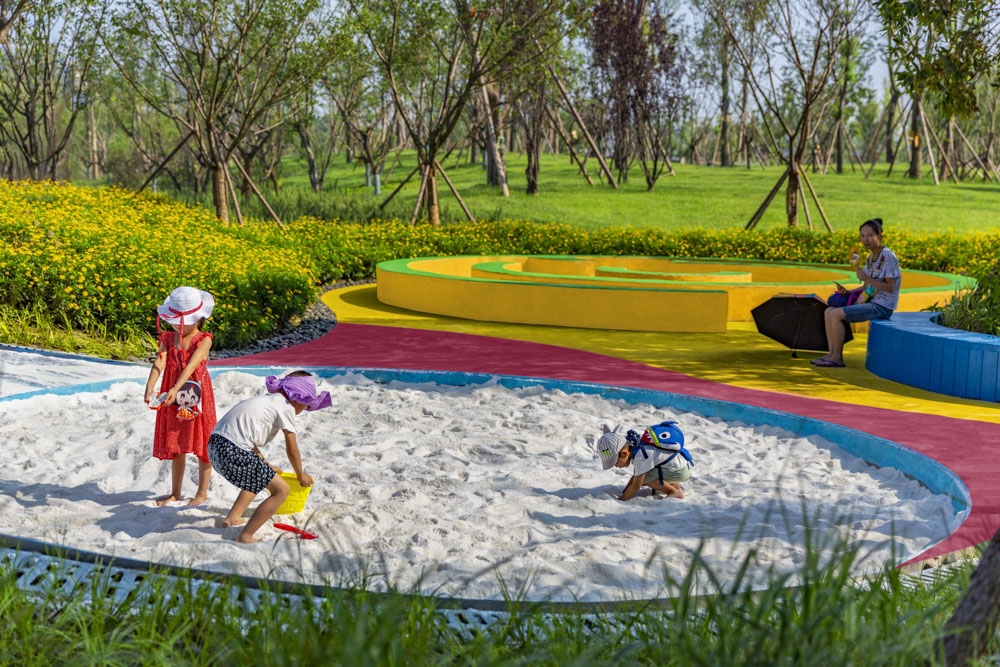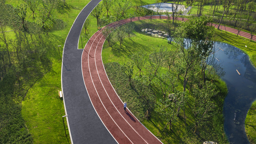 在形態(tài)上,根據(jù)周邊環(huán)境打造山水格局,以開闊的大水面與大草坪形成對話,利用局部地形的處理,使整個空間開合有序,豐富多變,在保證視線通透的前提下,創(chuàng)造趣味無窮的空間體驗。