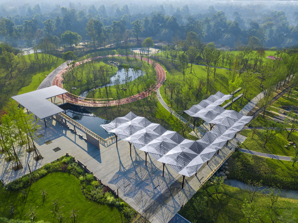 在成都塑造“人、城、境、業(yè)”生態(tài)可持續(xù)的大美公園城市總體布局下,沙河源公園的建立,在錦江綠廊核心位置,彌補了綠廊現(xiàn)狀的缺失部分。并以此串聯(lián)起整個規(guī)劃片區(qū)的慢行系統(tǒng),成為綠道上的重要驛站。同時在踐行“綠滿蓉城、花重錦官、水潤天府”的基礎上,將可進入、可參與、景觀化、景區(qū)化的原則進行再實現(xiàn)。